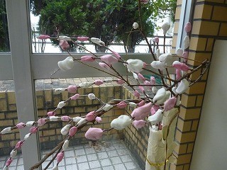 今回は、校長先生が剪定した校内の枝を使い、紙粘土をみんなでつけました。