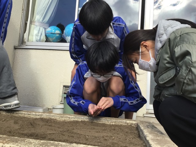 野菜が育ちやすいように土の柔らかさや種まきの間隔を意識して取り組むことができました。