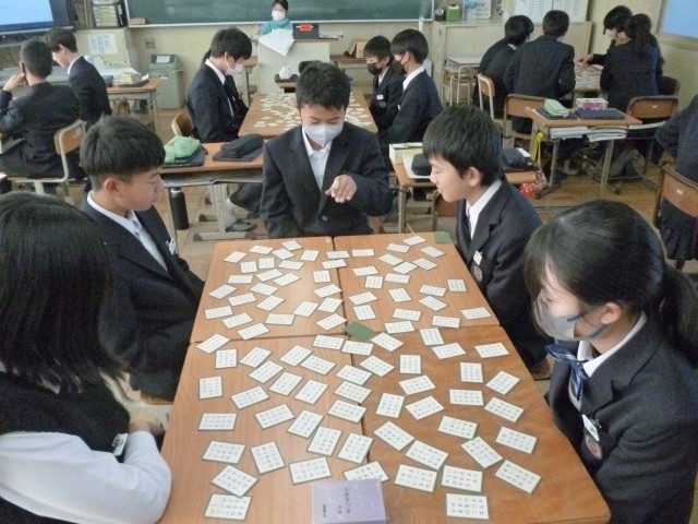 来週16日(金)に行われる百人一首大会に向けてクラスで練習をしています。