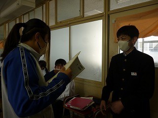 現在形、過去形、過去分詞について、ペアで確認していました。