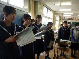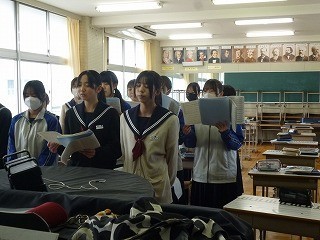 卒業式に向けて歌の練習をしました。