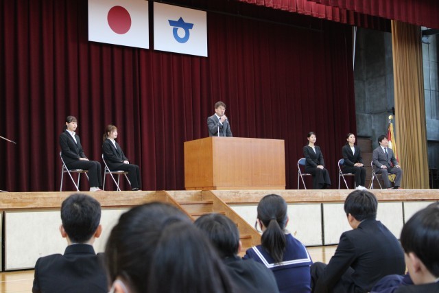 本日、新しく中部中学校にお見えになった先生方をお迎えする「新転任式」を行いました。