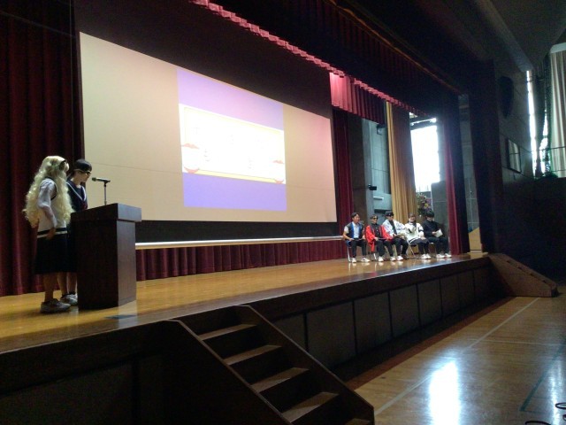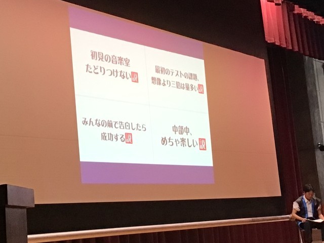 生徒会執行部を中心に、中部中の魅力や部活紹介をおもしろおかしく紹介してくれました。