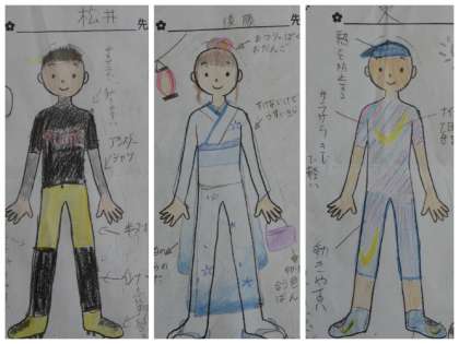 続・おすすめコーデ 公開日 2018/05/21 更新日 2018/05/21 校長室から 先週のおすすめコーデの続きです。 今日は、その発表会 衣の授業ですから、イラストのうまい下手は関係なし。 これからの季節に合わせた素材とのコーディネート でも、よーく先生のことを見ているなあ...