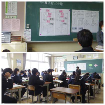 イメージ 公開日 2019/01/22 更新日 2019/01/22 校長室から 1年生の数学は、角柱と角錐の展開図を考え中 「立体視」ができると簡単に解けますが... 他の単元は得意なのにこれだけは苦手な子もいますね。 イメージが大事ですが、苦手ならパターンで覚えちゃうとか。 一人一人の学び方があるよ。