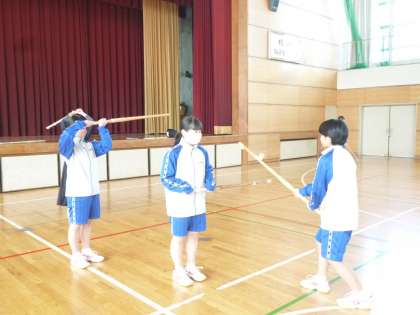 本日は、体育館で広いスペースを活用し、思い切り打ち込みました。