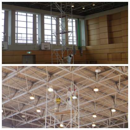 電灯 公開日 2019/02/19 更新日 2019/02/19 校長室から 体育館の照明は、家庭の蛍光灯交換のようにはいきません。 専門の業者に依頼しての大仕事になります。 年に1度しか交換の機会はありません。 ずいぶんと明るくなりました!