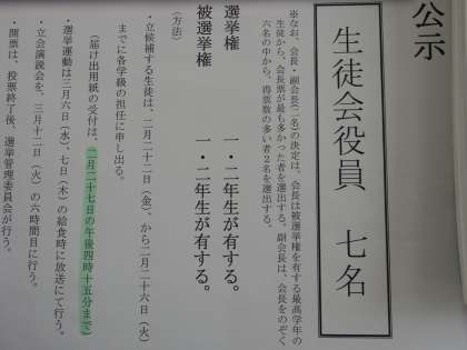 平成31年度の生徒会選挙は公示が終わり、運動期間中 今回は、立候補者が7名で定数と同数なので、信任投票となります。