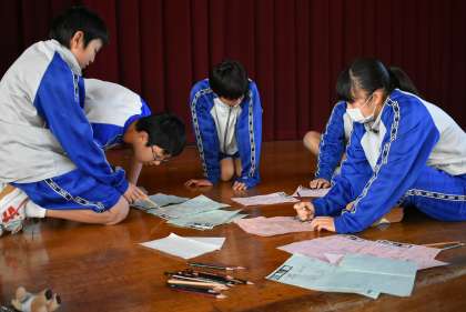 校舎や運動場に隠されている問題を探して、答えていきます。