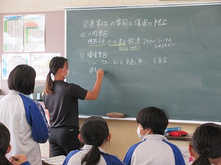 2年生の保健体育。 交通事故の要因について,意見を交流しています!