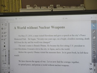 五感をフル活用しながら,オバマ元大統領の演説を題材に学習しています!