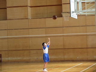 体育の授業では,バスケットボールを実施しています。 シュートよ,入れ!