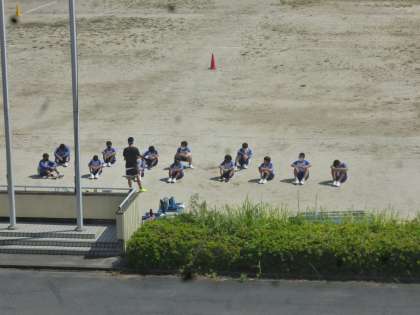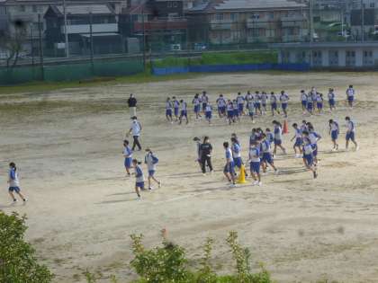 運動場での体育はどの学年も煌鳩祭に向けての動きの練習