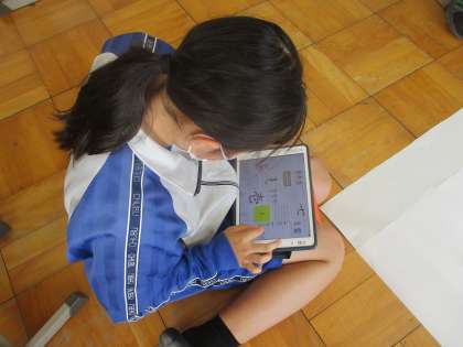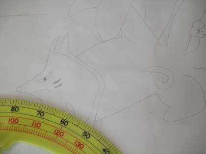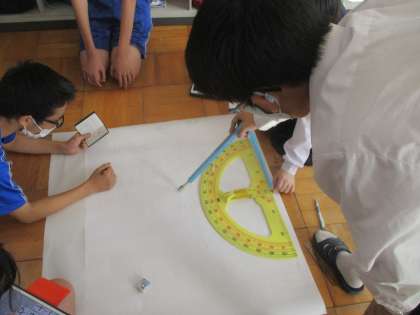 学級旗の下書きをしています。