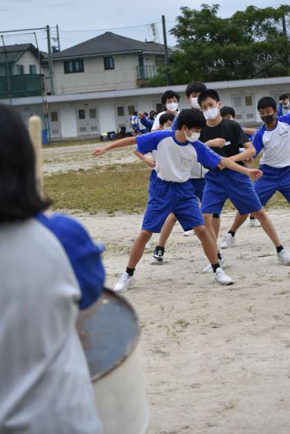 夏休み中にチームの3年生が考えた演舞を伝授中です。