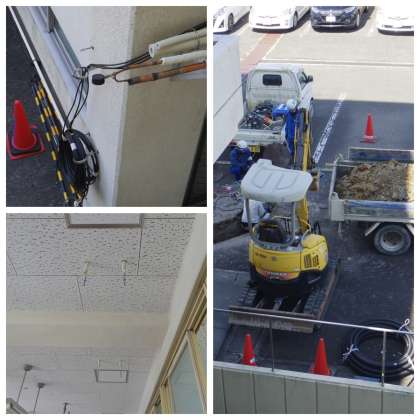 工事日記 公開日 2019/04/16 更新日 2019/04/16 校長室から クーラー空調設備の工事は順調に進んでいます。 内配管を終えて、外配管の工事中です。 機材の取付は、未完です。 7月の猛暑には、快適な環境が提供できそうです。