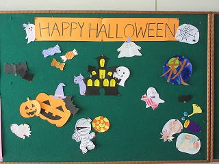 校内掲示板もすっかり秋です。 心がほっこりします!