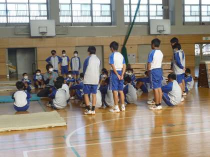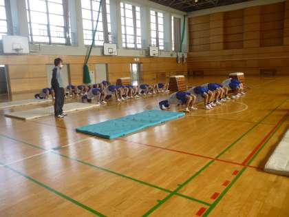 跳び箱にマット運動 集団の学び、個々の学びが融合されています。