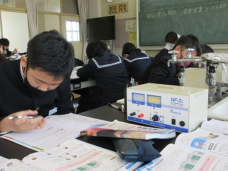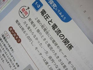電流と電圧の関係を教科書で調べたり、級友と相談したりしながらまとめています!