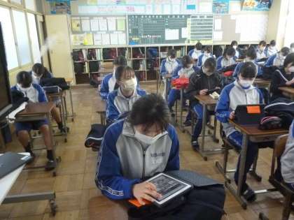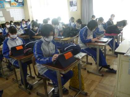 外で走った記録を教室に戻ってからタブレットにまとめます!