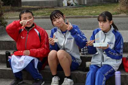 「おいしそ〜!」「かわいいお弁当だね!」本日のお昼は給食がカットされていたため,お弁当をみんなで持ち寄って食べました。昼食をとる中,多くの班でお弁当の見せ合いが行われていました。きれいな色の卵焼きや様々な野菜の入ったサラダ,肉厚なハンバーグなど,色とりどりのお弁当を楽しそうに見せ合い,食べている姿が印象的でした。一人ひとりの笑顔が絶えない束の間の時間でした。