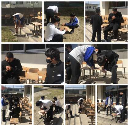 時間のない中、参加してくれています! おかげさまで150脚が修復されました!