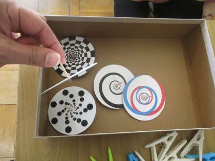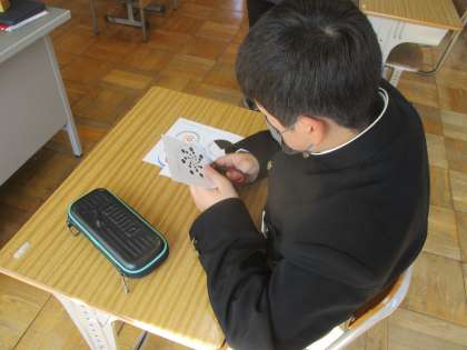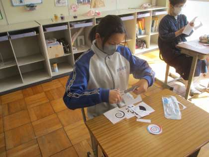 写真のこまを回したときに見える模様が、肉眼で見るのと、スマートフォンのカメラを通してみるのとで違って見えて、生徒はもちろん、先生もびっくりしていました! 写真に乗せられないのが悔しいです(=_=)