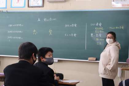 道徳 「愛」とは 「恋」とは 公開日 2022/03/16 更新日 2022/03/16 1年生 良い恋愛って何だろう。逆に悪い恋愛はどんなだろう。そもそも恋愛に良い悪いはあるのだろうか。一人ひとりが考えをめぐらせていました。授業後に生徒同士で授業の内容について話している姿も印象的でした。