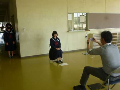 1年生が顔写真撮影。顔を合わせてしっかりと礼をして始まります。