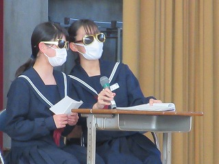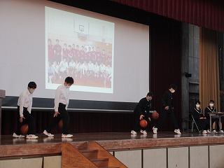 生徒会役員が中心となって、1年間の行事や部活動の紹介を行いました。