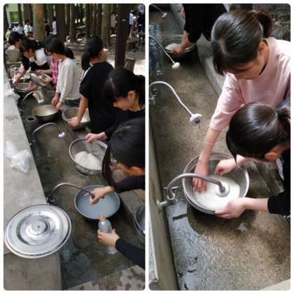 お米をといでいます!