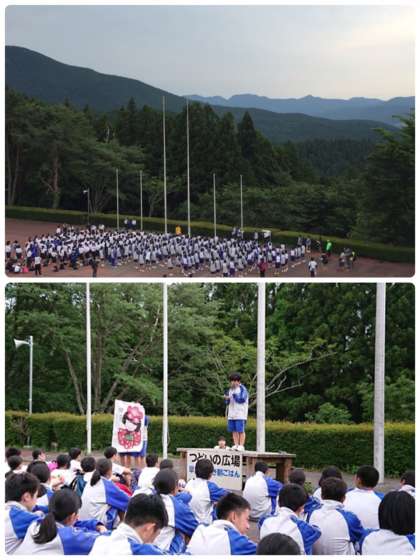 大阪我孫子中学校さんと一緒です。 梅子とともに中部中の紹介をしました!