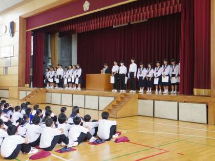 4・5月に行われた各種大会入賞と知多市優良児童生徒表彰を行いました。