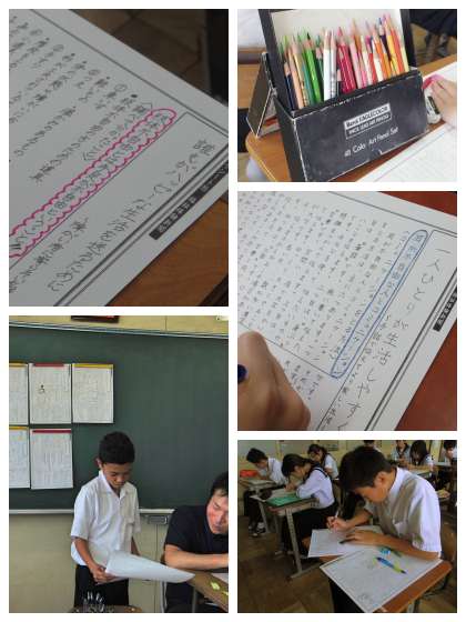 1年生は、先月総合的な学習で行った福祉体験教室をもとに壁新聞作りが終盤