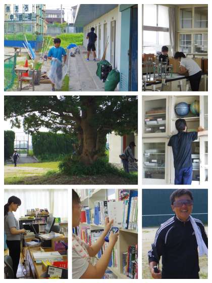 今日は、職員作業 体育倉庫・理科室・柔剣道場の整理 図書館の蔵書点検・運動場の除草作業・・・ 中部中の先生方の汗、汗、汗の日