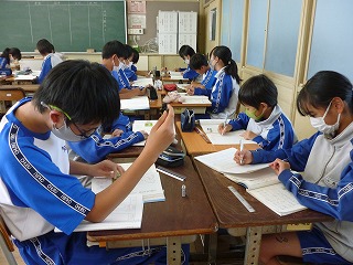 説明文を読んで、目的・方法・結果・考察・問題点をノートにまとめました。分からないときは、同じグループの友達に聞いています。