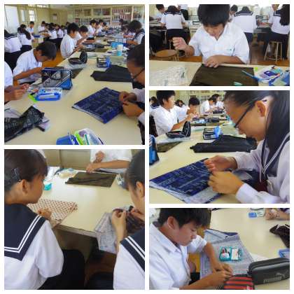 1年生の家庭科は裁縫です。 ブックカバーを縫い上げています。 ずっと使えるものに 丁寧に丁寧に!