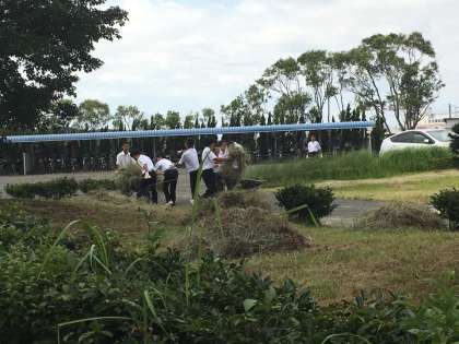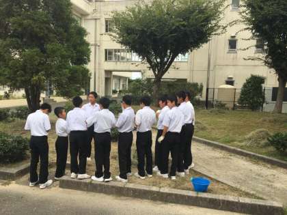 サッカー部の有志を中心に、本日、昼放課に1年昇降口付近の草集め、草運びを企画しました。