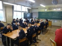 中部中学校に新制服のサンプルが届きました。放課になると生徒たちが集まって、細部までよく見てどれに投票するか考えています。知多市の将来の中学生のために、真剣に責任をもって投票しましょうね。