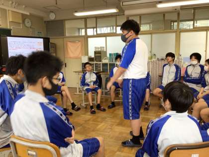 7・8・9組 新入生歓迎会 公開日 2024/04/16 更新日 2024/04/16 789組 5・6限に新入生歓迎会をしました。 2・3年生が新入生のために、準備から当日の会の運営まで協力して行いました。 爆弾ゲームやジェスチャーゲーム、なんでもバスケットなどを行い、3学年で楽しい時間を過ごしました。