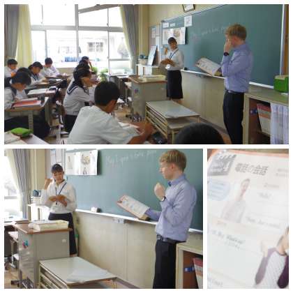 電話 公開日 2019/10/08 更新日 2019/10/08 校長室から 今週は、ALTのヨウニ先生の来校があります。 「電話の会話」 今井先生とヨウニ先生が実際に範読しています。 なんだかテレビの語学放送のダイアログみたい