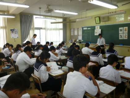 教育実習生授業2 公開日 2019/10/16 更新日 2019/10/16 職員室から 6限は2年2組で英語科授業 Unit5 Universal Design 「接続詞 that の活用」 接続詞を用いて、身近な話題について、自分の考えや意見を述べたり、書いたりしました。 まず、フラッシュカードで単語の発音と意味を確認。 次に、ピクチャーカードを見ながら本文の内容をつかむ。 ペア活動で、繰り返し練習しました。何事も、基本が大切です。
