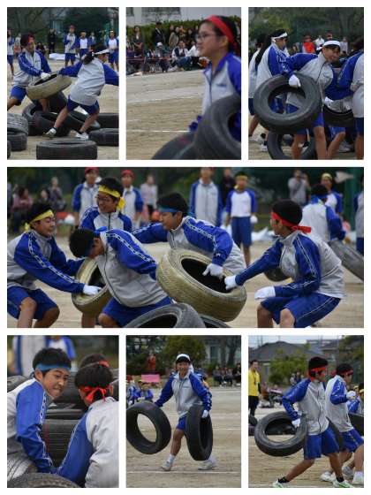 中部中学校名物競技 代表生徒によるタイヤ取り