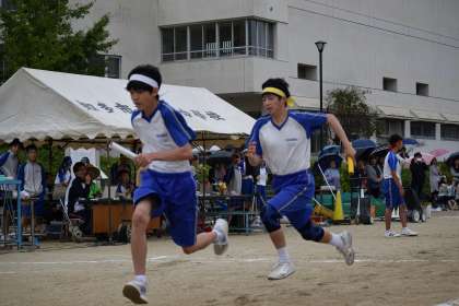 午後の部は、応援合戦の後、綱引き、学級大リレー。 一生懸命流す汗は美しい! 振り向くな 君は美しい!
