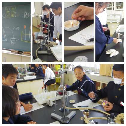 蒸留 公開日 2019/11/11 更新日 2019/11/11 校長室から 1年生理科は「蒸留」の実験中 水とエタノールが混じった液体を熱して・・・ エタノールを取り出しています。 実験らしい実験ですね。