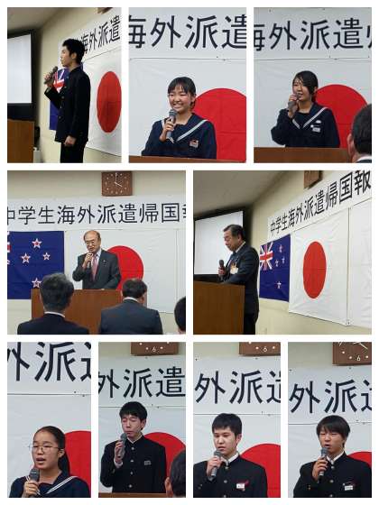市長・教育長・市議会議福祉文教委員の皆さまにご参加いただき、帰国報告ができました。色あせぬ感動を発表して、また12人の絆が強まりましたね。