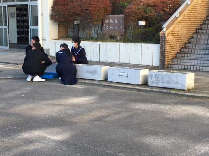 本日昼放課、約30人の参加者の皆さんのおかげでたった10分程度で花壇がこぎれいに整備されました。