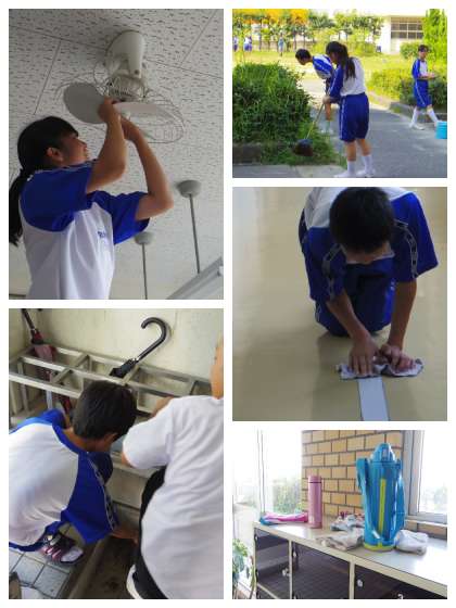 大掃除 公開日 2018/07/19 更新日 2018/07/19 校長室から 師弟同行 酷暑の大掃除なので、担当区域にタオルと水筒をもっていきました。 いつもは手の届かないところまできれいなりました。 よく働く頭と手 さすが中部中!