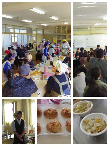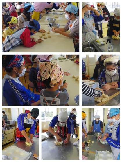 柔剣道場で自己紹介をしてから、4階の調理室・被服室でパン作りをしました。
