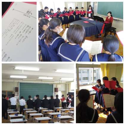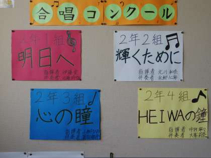 明日へ 公開日 2019/11/20 更新日 2019/11/20 校長室から ♪きっと きっと行くよ 辿り着いてみせるよ♪ 2年1組は、「明日へ」で臨みます。 音楽の時間に担任の先生も一緒に歌ってます! 君たちの辿り着く先を楽しみしていますよ。